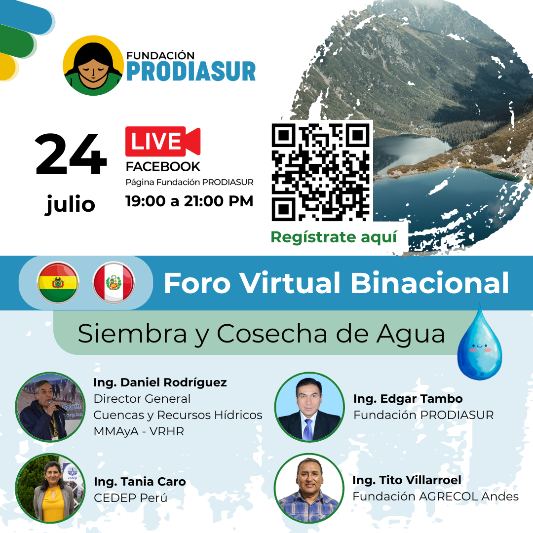 Intercambiar experiencias, aprendizajes y desafíos sobre la siembra y cosecha de agua en Bolivia y Perú, promoviendo la articulación entre el Estado, organizaciones sociales y sociedad civil para fortalecer la gestión integral de cuencas y la sostenibilidad hídrica desde una perspectiva territorial y comunitaria.